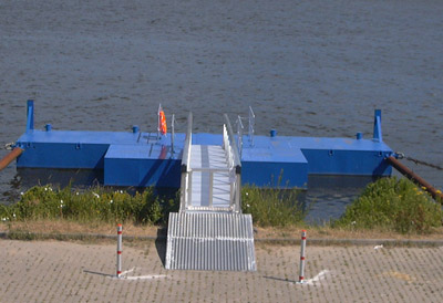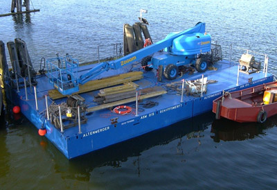 der neue, patentierte Container- Ponton der Altenwerder Schiffs-